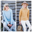 A textured body and sleeves adorn these two sweaters with different necklines. An elegant design for in between seasons.