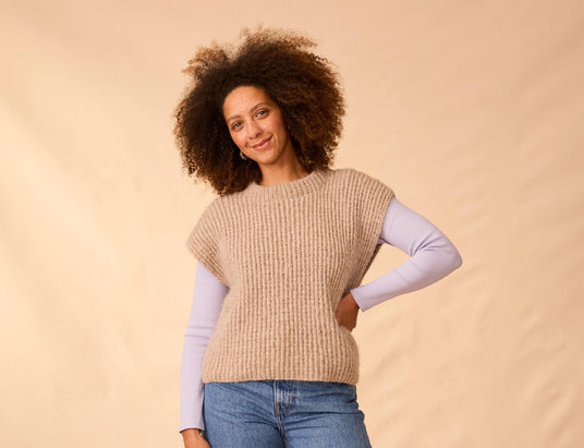 Feeling Good Yarn is soft, airy and wonderfully warm without being heavy. Blending alpaca, merino and recycled fibres, it creates garments with a relaxed drape and a cosy halo finish, perfect for layering pieces you’ll reach for every day.