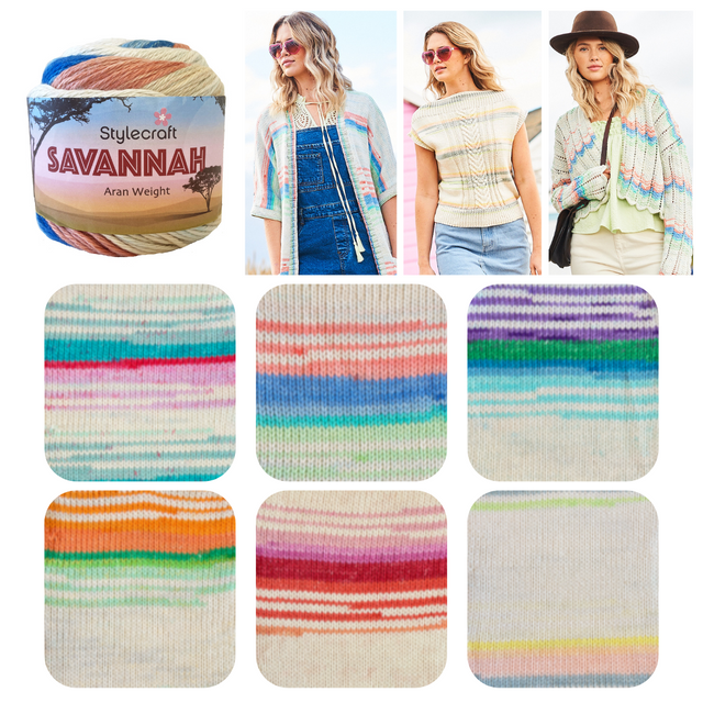 Be transported to warm a sub-tropical grasslands with Stylecraft's Savannah yarn. This aran weight yarn has a long colour change and is made using 100% cotton meaning its not only cool but natural too so perfect for sensitive skin.