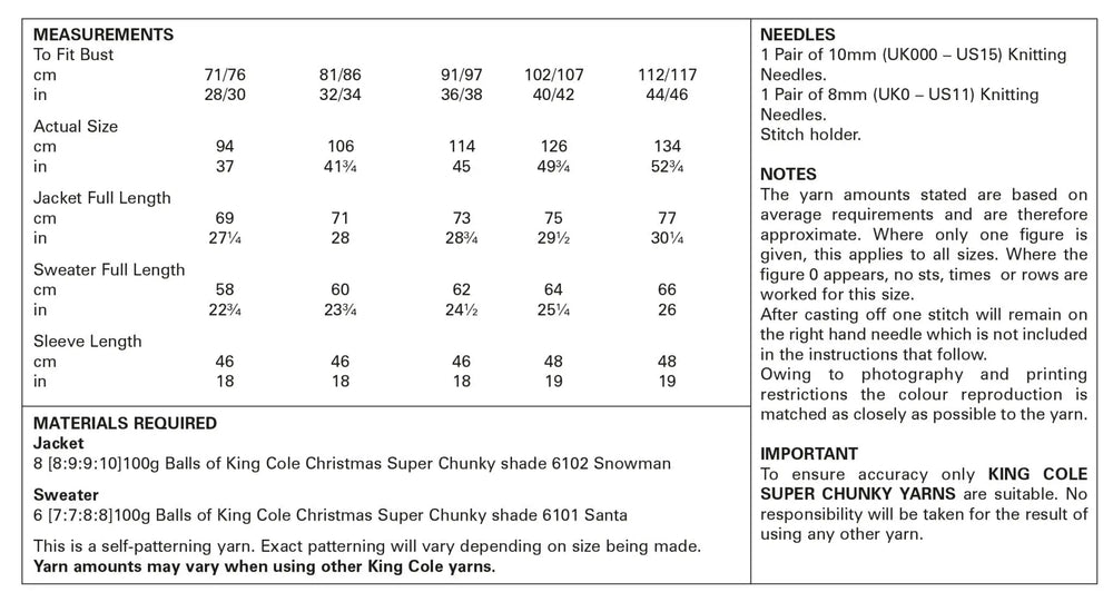 King Cole Christmas Super Chunky Jacket & Sweater Pattern 5779