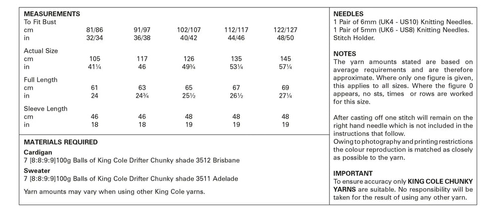 Cosy up in style with this fabulous King Cole Drifter Chunky pattern! Perfect for crafting a gorgeous cardigan or sweater, this adult design promises chunky comfort and effortless elegance. Your next favourite knitwear awaits!