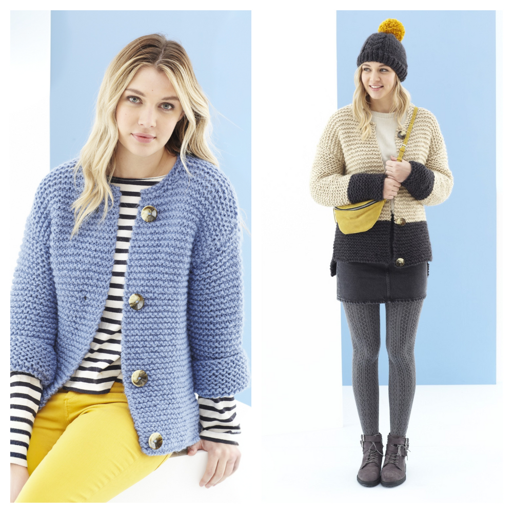 Get ready to craft your new winter wardrobe essential! This playful pattern lets you knit a luxe chunky cardigan and matching hat combo. King Cole's super chunky yarn means faster needles and instant gratification—hello, cosy glamour!