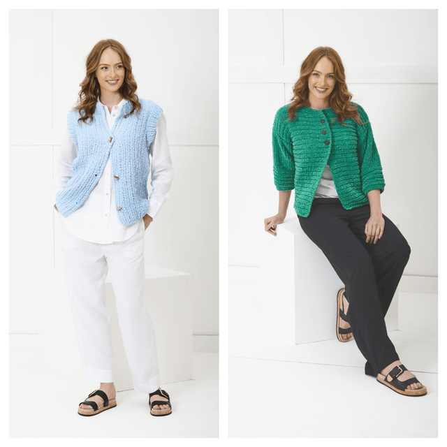 Design sophisticated gilets and cardigans for adults with King Cole Yummy Glitz Chunky pattern 6394—ideal for creating distinctive, handcrafted garments with ease.