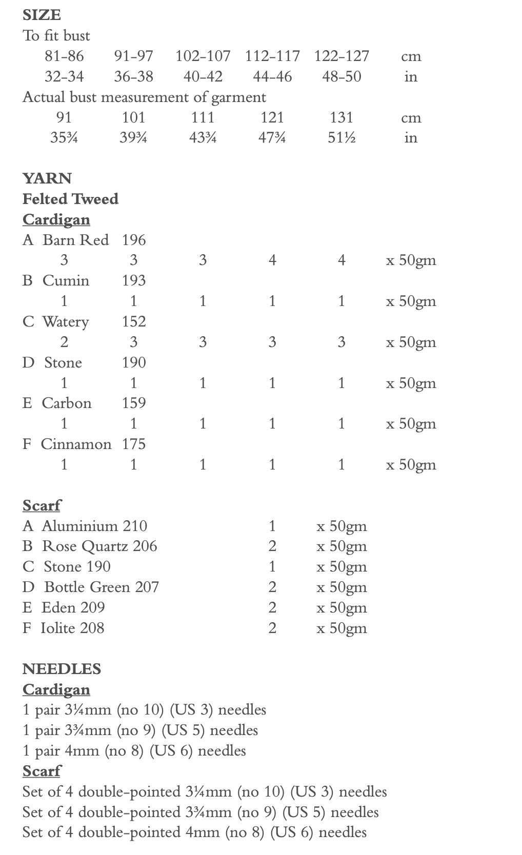 A beautifully composed design by Lisa Richardson, this Rowan pattern features two elegant pieces: a fitted cardigan and a coordinating scarf, both showcasing the timeless appeal of Felted Tweed (50% wool, 25% alpaca, 25% viscose). The cardigan is rich in detail, with refined Fair Isle and stripe motifs adorning the body and sleeves, finished with a classic crew neckline and full-length sleeves. The matching scarf echoes the same intricate pattern work, offering a harmonious and sophisticated pairing for the discerning knitter.