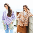 Pockets are a girl’s best friend. These stocking stitch cardigans have big garter stitch pockets. The cuffs are also garter stitch which give a different texture. We just love the long two-tone cardigan for something a little different.