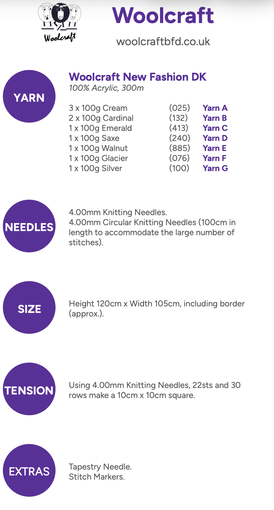 Bring a touch of Nordic charm to your home with this beautiful Scandi Folk inspired blanket featuring rows of traditional hearts, cosy houses and festive trees. Knitted in Woolcraft New Fashion DK, it combines classic colourwork with textured stitch panels and striped borders for a timeless handmade finish.