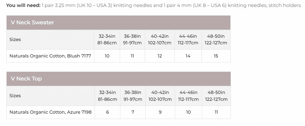 You will need: 1 pair 3.25 mm (UK 10 USA 3) knitting needles and 1 pair 4 mm (UK 8 USA 6) knitting needles, stitch holders.