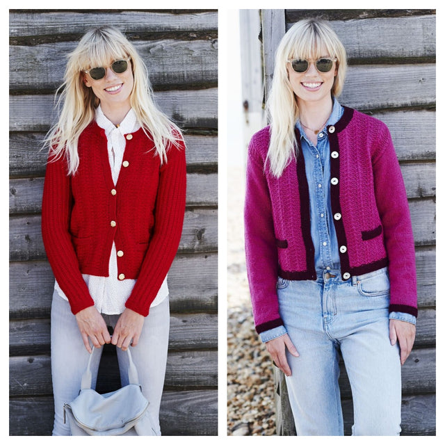 You will need: Pair of 4mm (UK 8 – USA 6) knitting needles and Pair of 3.25mm (UK 10 – USA 3) knitting needles. Cable needle. 10 buttons for each jacket.
