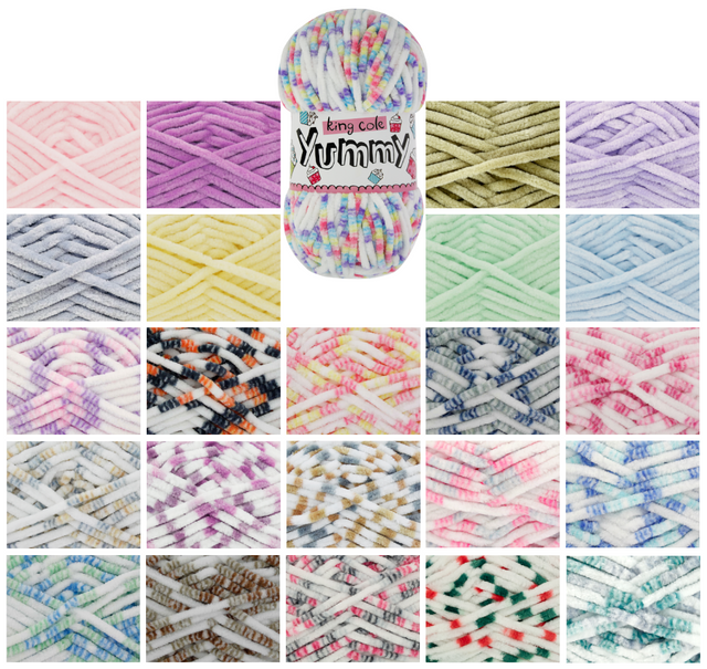 Yummy by King Cole is an amazingly soft and scrummy yarn. Yummy Chunky is perfect for a wide range of projects including baby comfort garments and accessories.This yarn is a chenille effect yarn meaning it's super soft and just perfect for those baby makes.