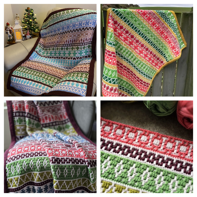 Adventures in Overlay Mosaic is worked in single-colour rows using the overlay mosaic crochet technique, and is finished off with a simple envelope border to hide the loose ends. There are no special stitches, and no mid-row colour changes, making the pattern perfect for beginners to the technique, and also for anyone wanting something easy to do whilst watching TV. If you are unfamiliar with mosaic crochet or the envelope border, don’t worry, they are much easier to do than they look, and step by step instructions are given.